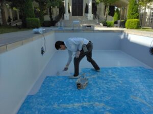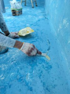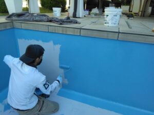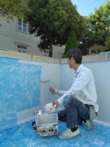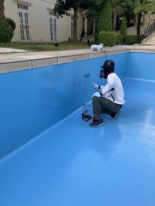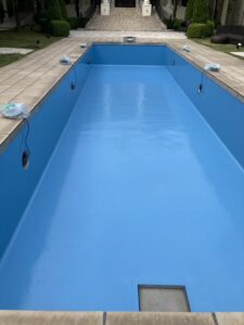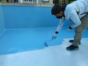 中塗り・上塗りには、プール専用塗料の 「プールコート」 を使用。