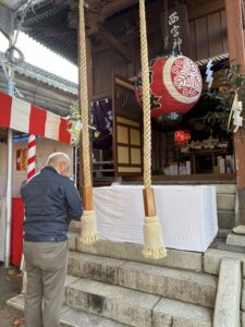 恵比寿講へ行き、お飾りを購入して三本締めで景気付けしていただきました!