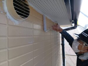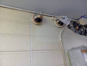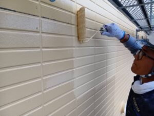 外壁の凹凸もしっかり拾いながら、塗りムラが出ないよう丁寧に仕上げていきました。