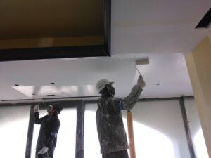 広い天井面もムラが出ないよう、ローラーで丁寧に施工しました。