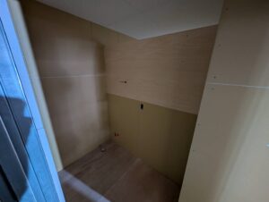 ボード施工後は一気に空間が整い、仕上げ前の最終段階へと進んでいきます。